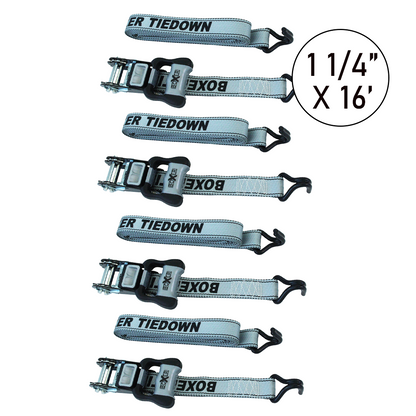 Boxer Pro 1 1/4" x 16' Ratchet Tie Downs Set with Coated J Hooks - 2500 lbs Breaking Strength